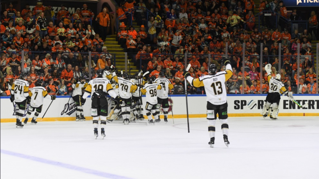 Panthers beat arch-rivals Sheffield Steelers over two legs, with a 3-0 victory followed by a 5-4 overtime victory.